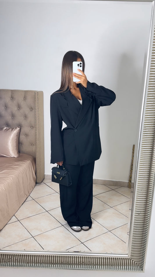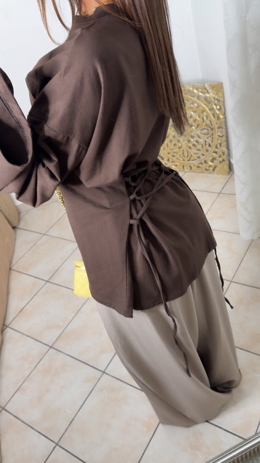 Ensemble tailleur veste à ceinture effet velours [MARRON]