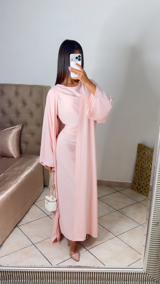 Ensemble robe cintrée à nouer au dos et kimono [ROSE]