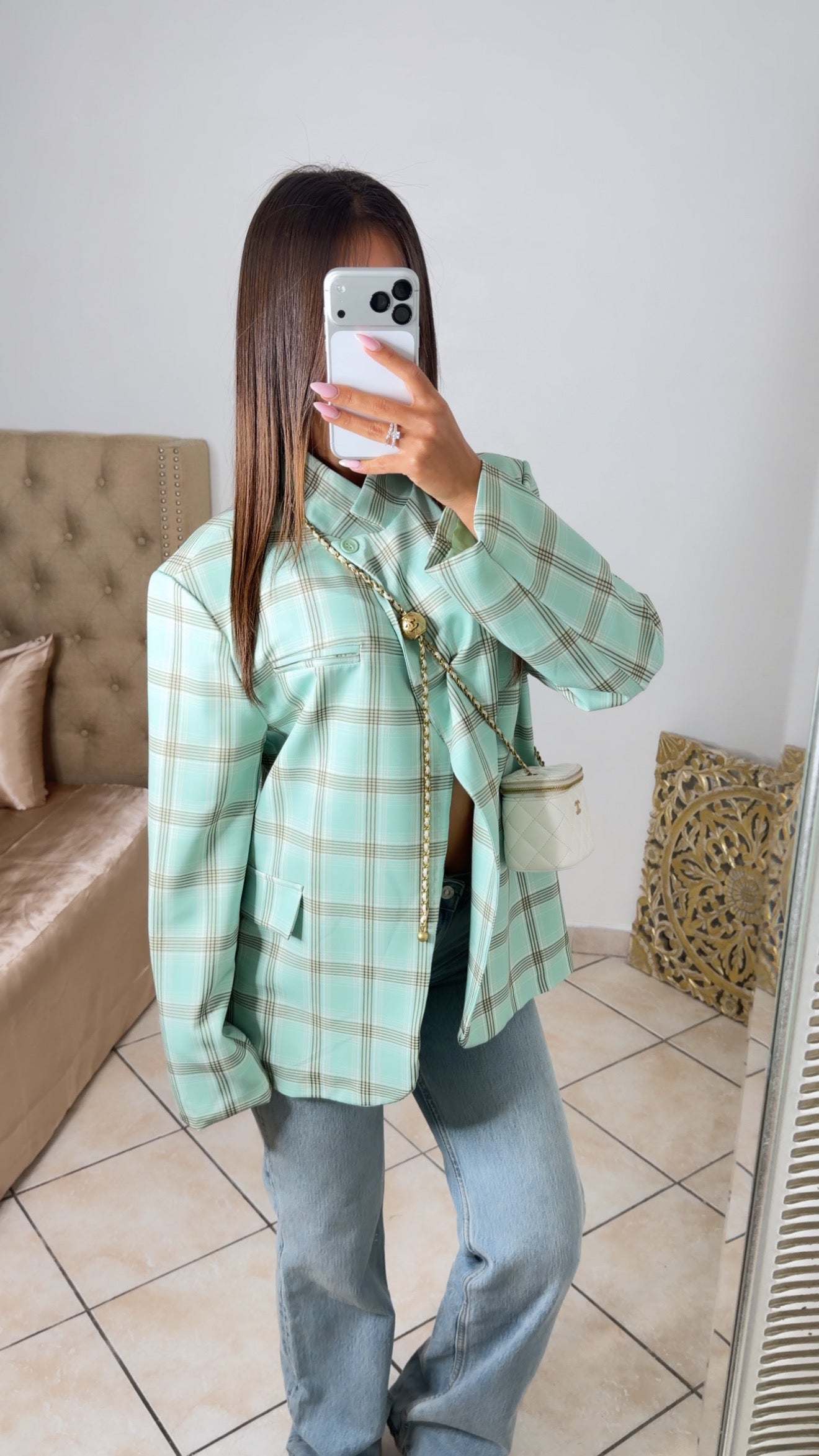 Blazer surdimensionné à carreaux [MENTHE]