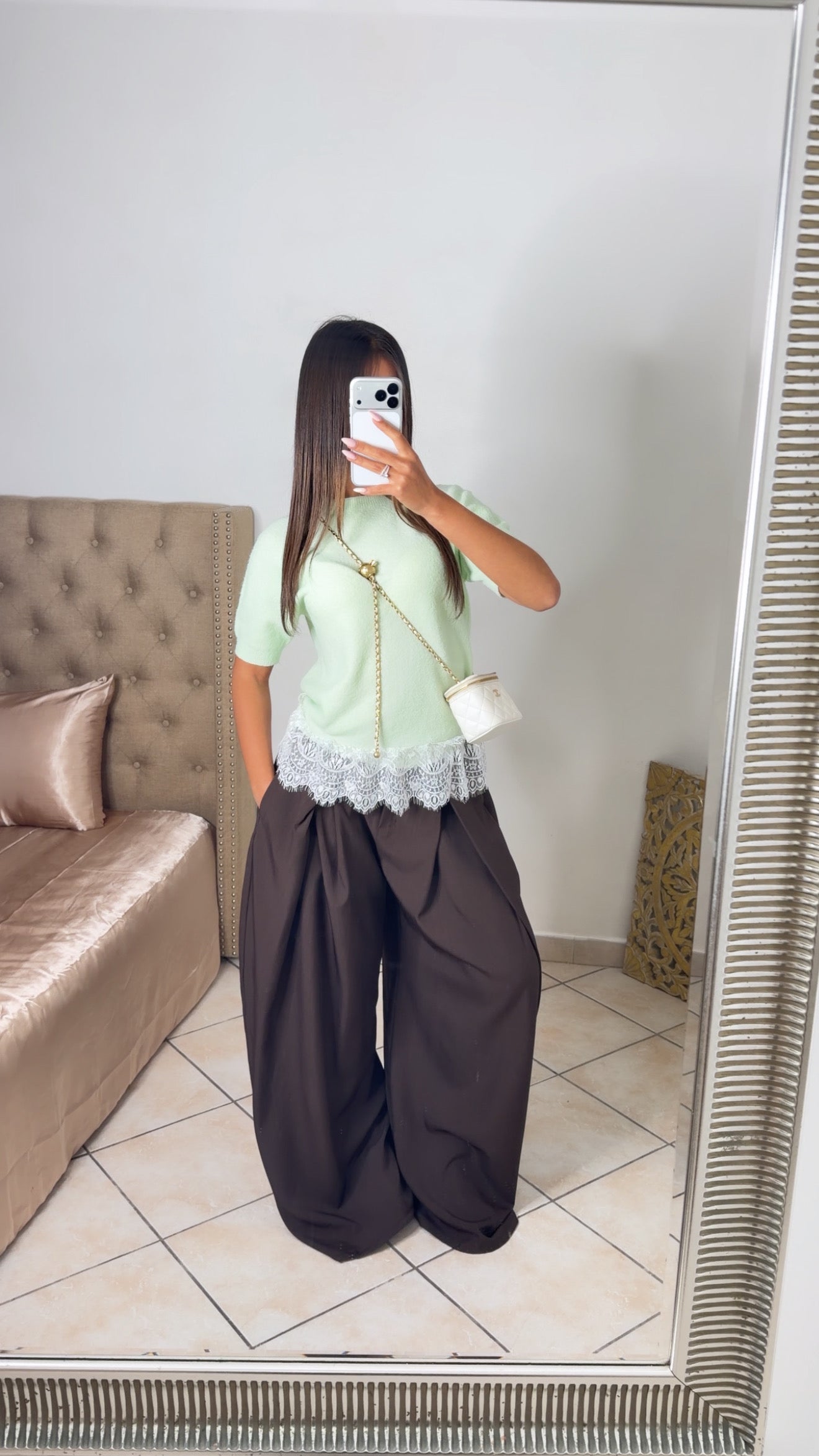 Top en maille douce à détail dentelle [MENTHE]