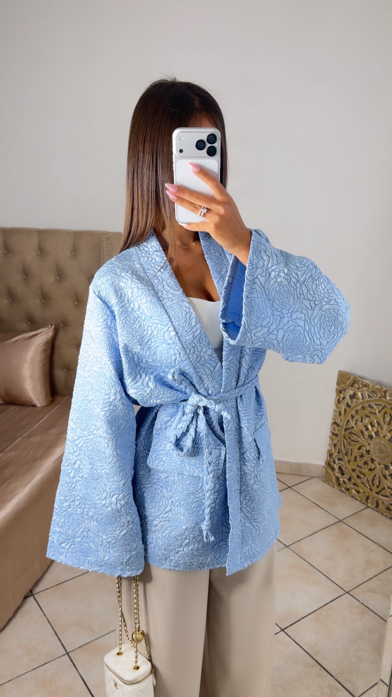 Kimono brocard à ceinture [BLEU]